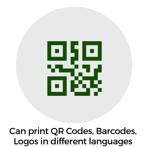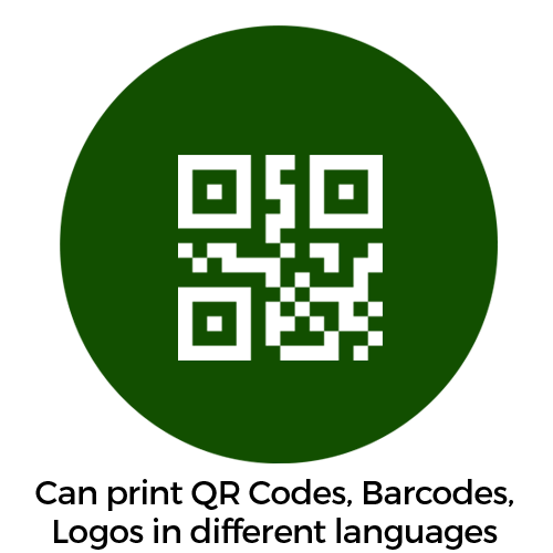 Can print QR Codes, Barcodes, Logos in different languages